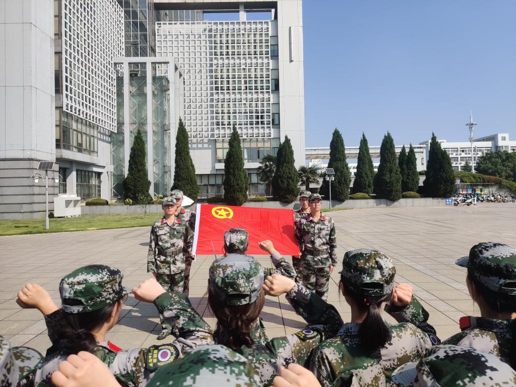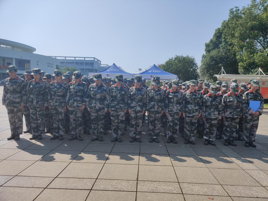 伴随防空警报声响起,全体助训教官、辅导员和参训学生集体默哀三分钟,表达对先烈缅怀之情。默哀结束后,全体新生在团旗面前高举右拳,在领誓员的带领下,面对庄严高举的团旗重温“入团誓词”。